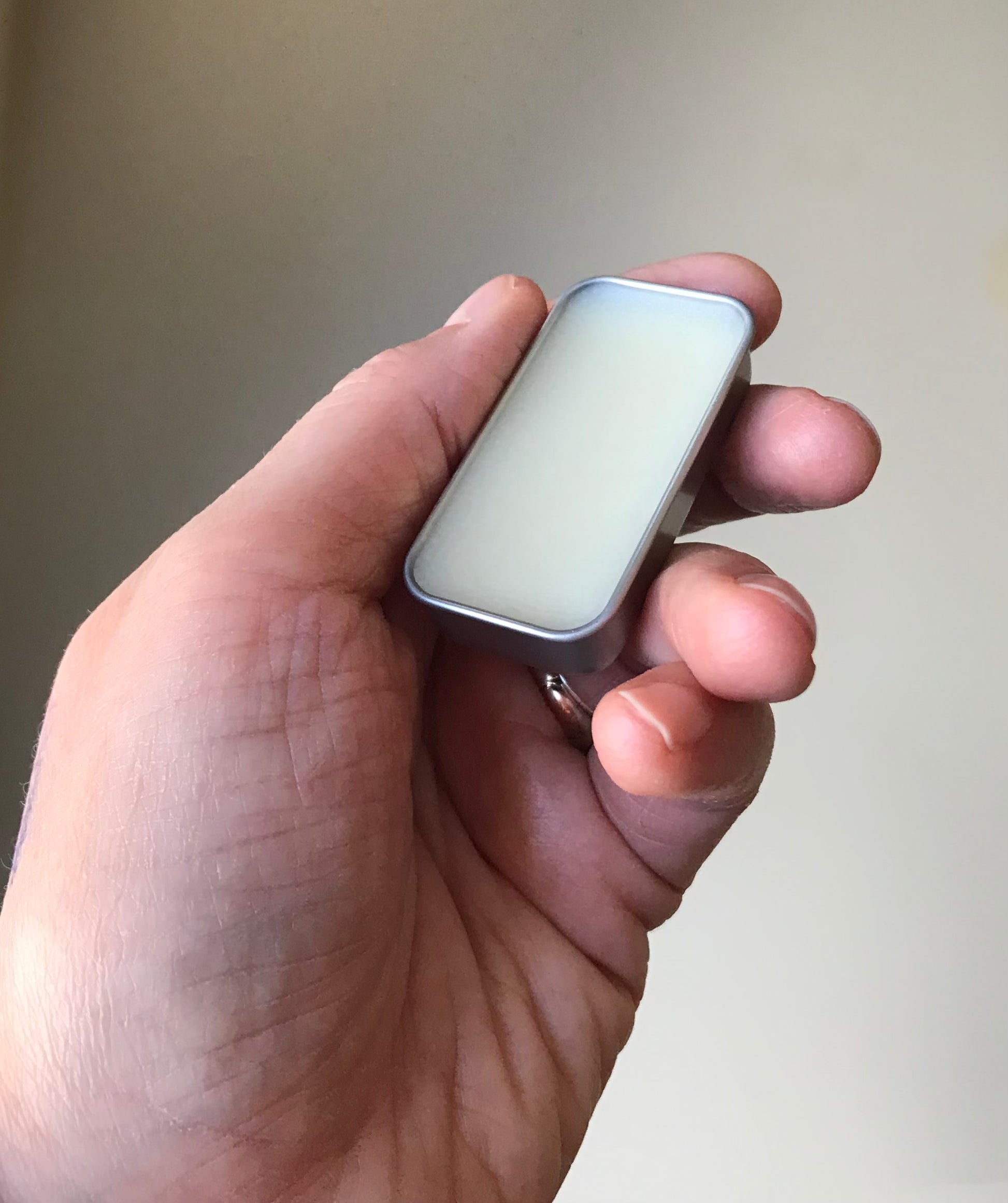 Materials: Candelilla Wax, Helianthus Annuus (sunflower seed) oil-Locally Sourced, Mangifera Indica (mango) seed butter, Abyssinian oil, Stearic acid, dl-alpha tocopherol (Vitamin E) oil, Arrowroot powder, Calcium Carbonate,