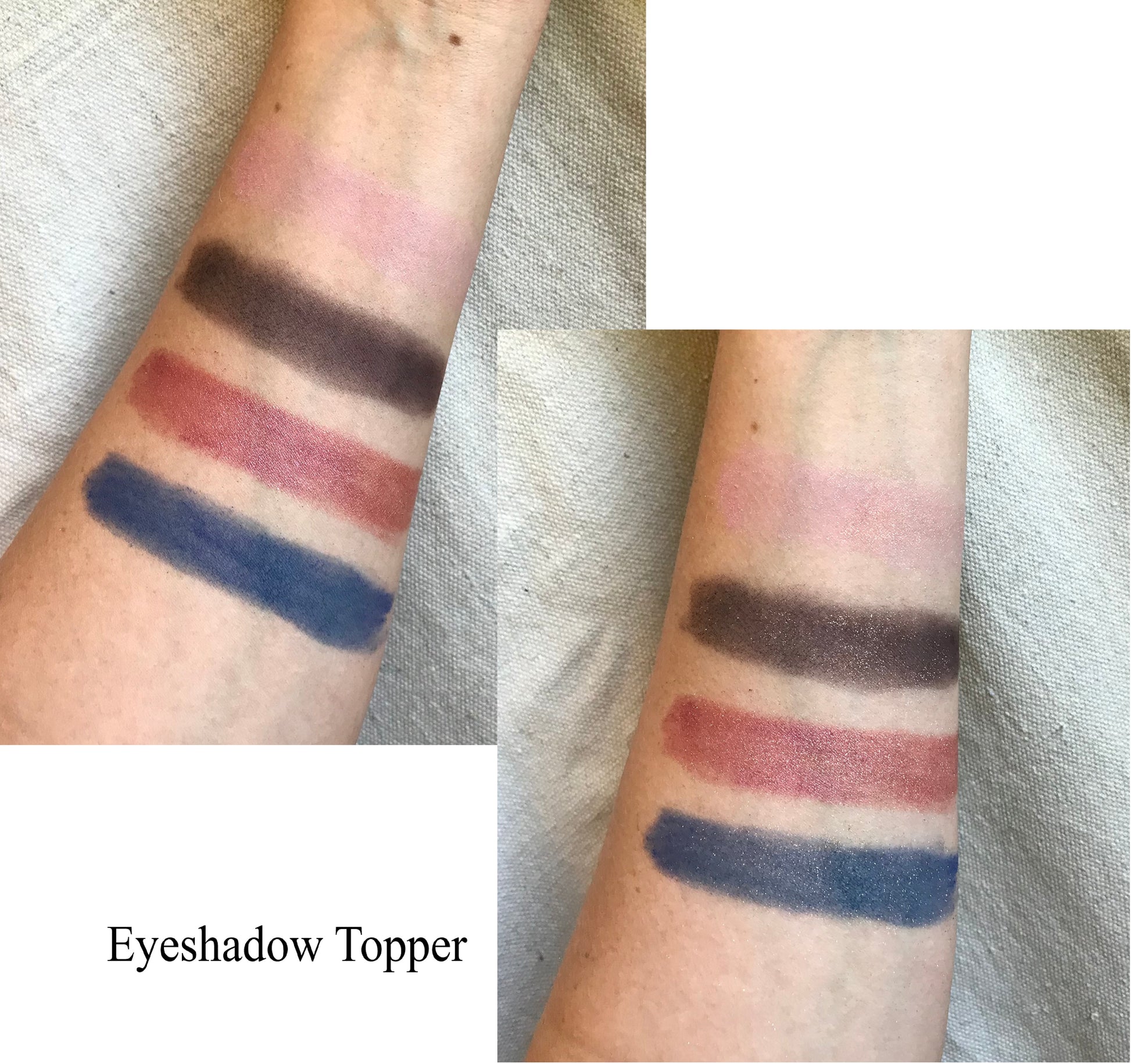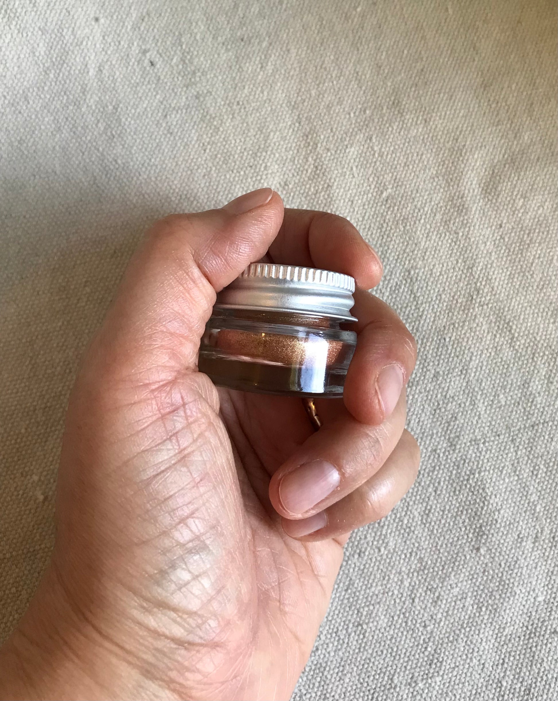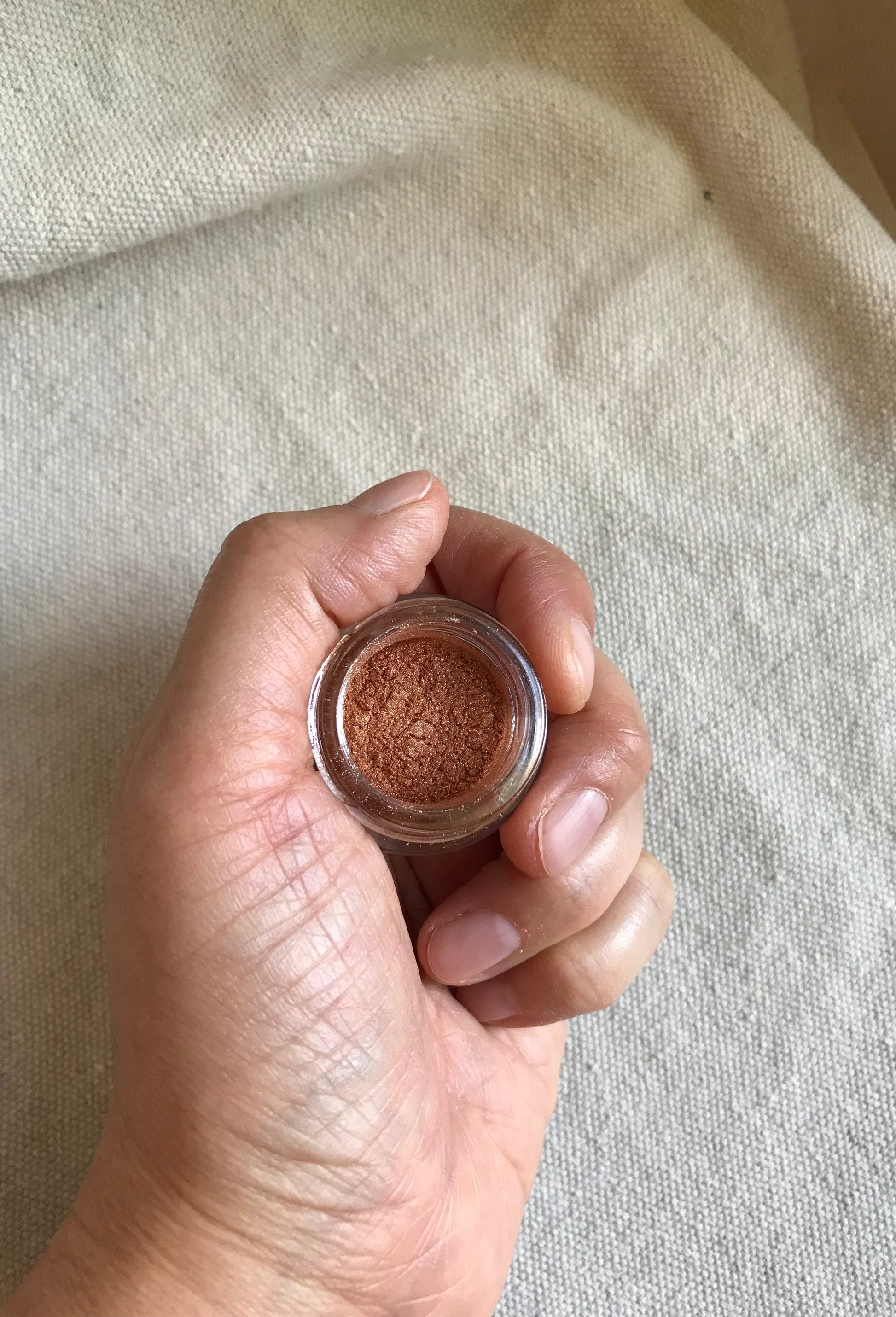 Golden Amber Shimmer Eyeshadow + Highlight is a loose powder shimmer that gives dramatic sparkle to eyes and cheeks. Use as a one-and-done shimmer shadow, or as an eyeshadow topper over other colors. Lightly brush on the cheeks for a sparkly highlight.
